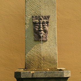 Gartenbrunnen, Wasserspeier, Gartengeister, Stein-Mobiliar, Akzente für Haus und Garten, Arrangements aus Naturstein.